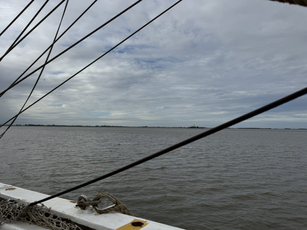 Da wir aber wussten, das wir eine erfahrene Stammcrew sind, hatte niemand Angst und außer nassen Klamotten der gerade tätigen Wache, überstanden wir den kleinen Härtetest problemlos. Denn die „alten Hasen“ beruhigten die „Neuen“) also blieb unsere Stimmung entspannt, aber mit der notwendigen Konzentration.