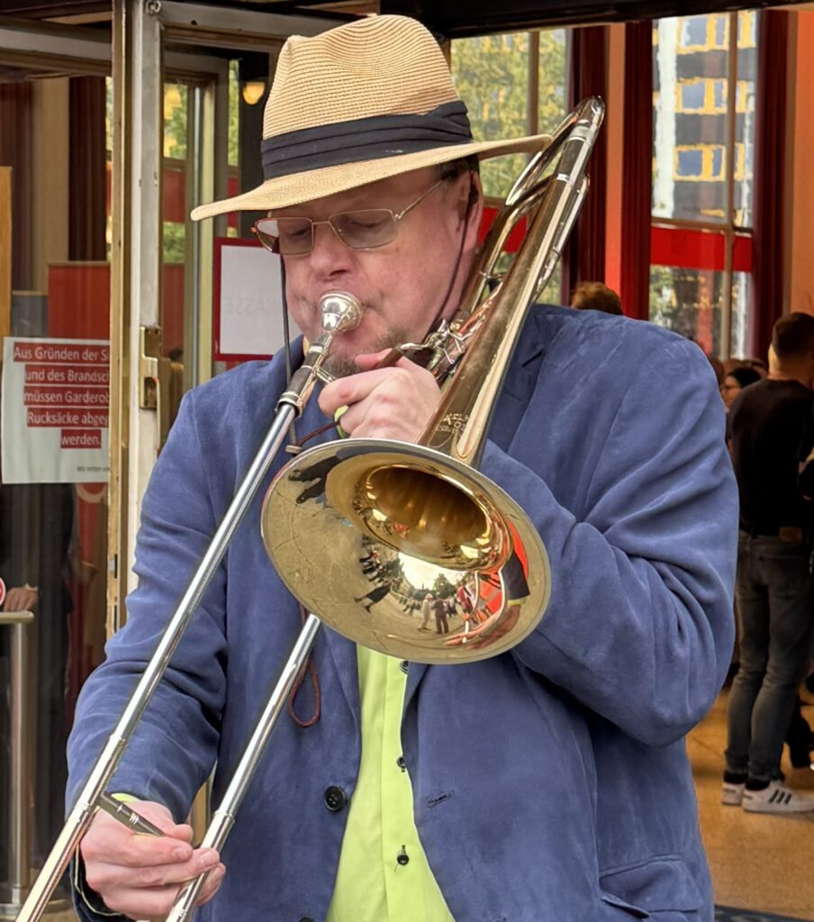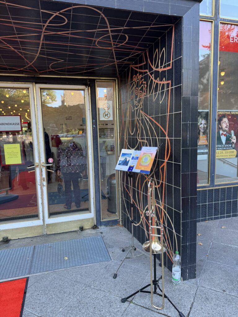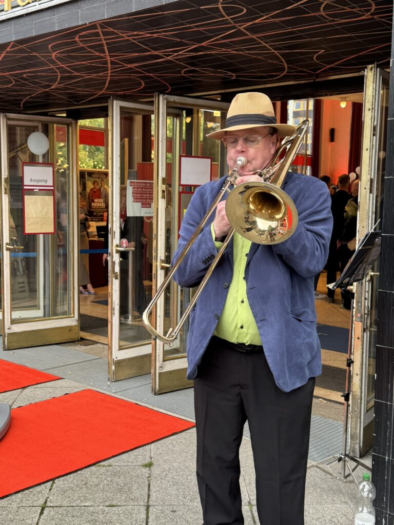 Abends irgendwann doch wieder zu Hause in Berlin angekommen, hatte ich eine ungewöhnliche Musikanfrage per E-Mail. Ich sollte für die „Komödie Berlin“ vor einer Premiere mit meiner Posaune das Publikum mit einem „Melodienstrauß aus aller Welt“ empfangen, dem kam ich natürlich sehr gerne nach und so erlebten mich 700 Ehrengäste!