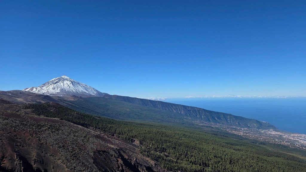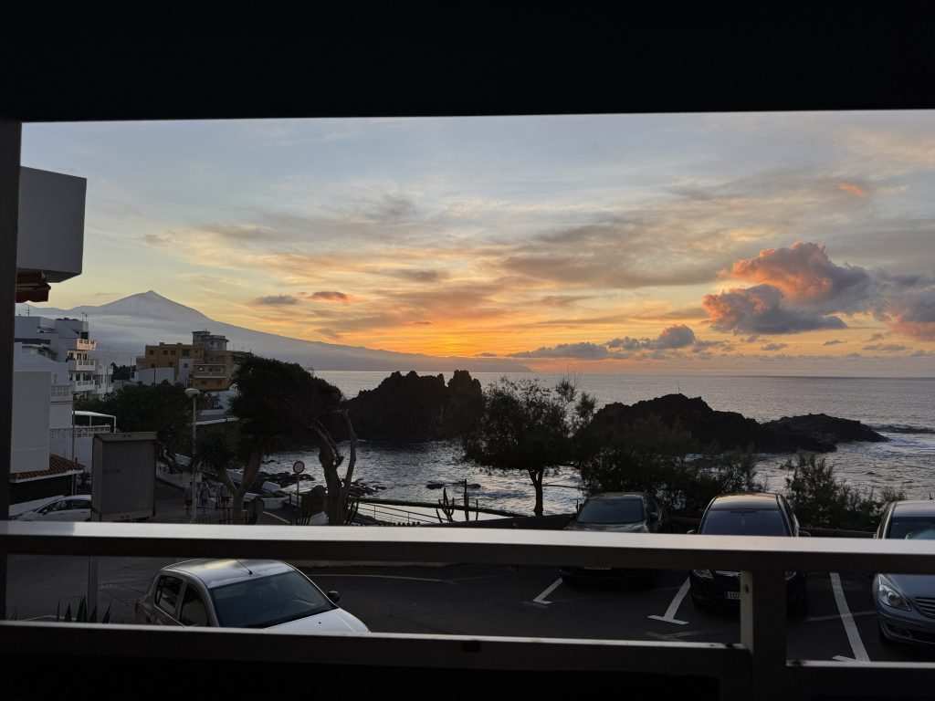 Nach etwa 1 Stunde Verspätung hob unser Flieger dann am Flughafen BER ab und wir erreichten abends unseren Zielort El Pris. Da wir uns im letzten Jahr dort sehr wohlgefühlt haben, hatten wir dieses Mal wieder die gleiche kleine, aber schöne Ferienwohnung mit Terrassenblick auf den Teide und Atlantik.